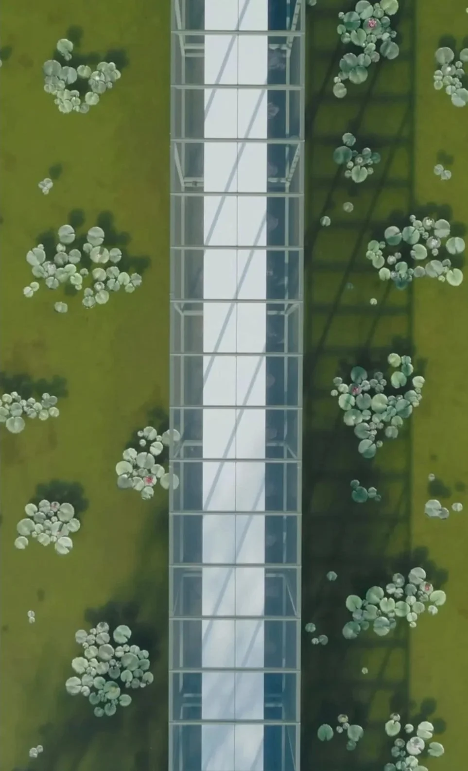 The visual language focused on softness, translucency, and atmosphere. The goal was to dissolve the boundary between set and garment, allowing the Dior woman to move through a landscape that felt both natural and dreamlike.A greenhouse structure was constructed over the water lily pond at the Jardin des Tuileries, creating a transparent architectural volume where water, light, and botanical elements became part of the runway narrative. Reflective surfaces and layered vegetation allowed the environment to shift throughout the show, echoing the fluid movement and romantic silhouettes of the collection.